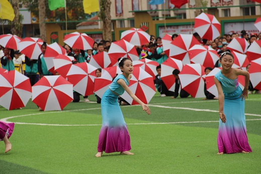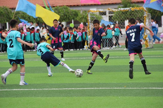 本次活動在演出開始前,舉行了升旗儀式,接著,為一年級新少先隊員舉行了入隊儀式,由高年級少先隊員為新少先隊員佩戴好紅領(lǐng)巾,在輔導(dǎo)員閆錦霞老師的帶領(lǐng)下,新少先隊員們以飽滿的精神、響亮的聲音鄭重宣誓。隨后精彩的?藝演出開始,節(jié)目豐富多彩,課間操展演、民族大團(tuán)結(jié)舞蹈、曳步舞等匯演的節(jié)目經(jīng)過細(xì)?的排練,精益求精,真正達(dá)到了“搭建?闊平臺,實現(xiàn)??參與”的目的,接著“雛鷹杯”四、五年級的足球決賽將整個活動拉向了高潮。同學(xué)們用童心演繹著快樂,用多姿多彩的節(jié)目傳遞著心中的喜悅,用別樣的方式慶祝著自己的節(jié)日。