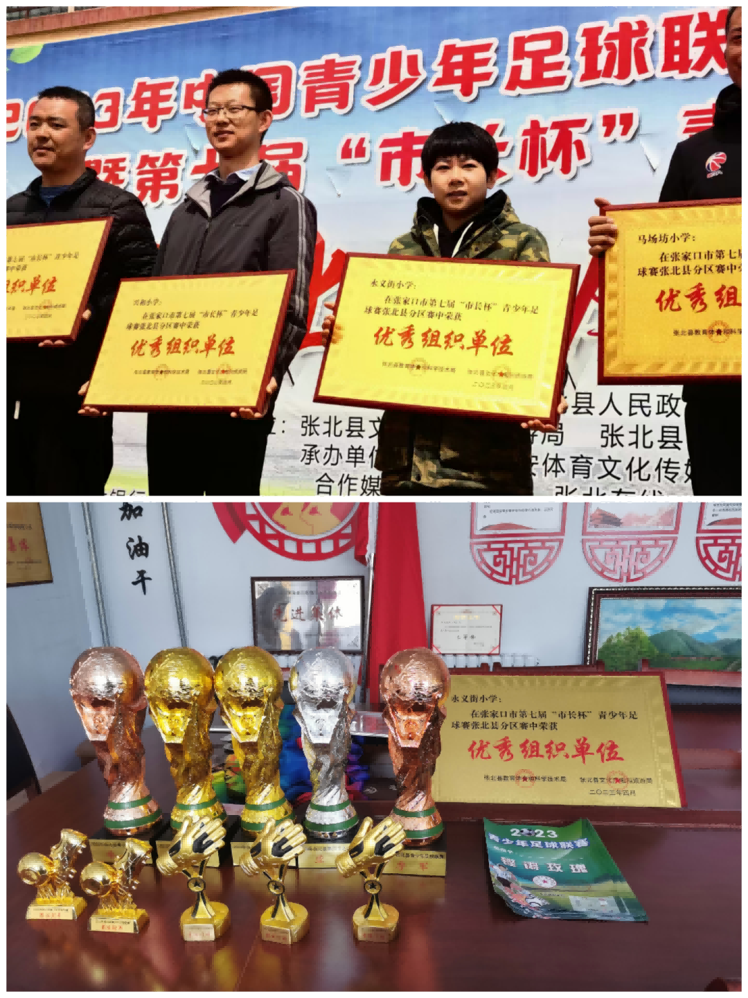 沉甸甸獎杯的背后,有著孩子們數(shù)不清的汗水與淚水,每一個日日夜夜,不管大風(fēng)大雨都有球員們的身影,加油拼搏吧!成績的取得離不開孩子們的刻苦訓(xùn)練,也離不開足球教練們的辛勤付出,更離不開學(xué)校領(lǐng)導(dǎo)的高度重視!預(yù)祝永義街小學(xué)的孩子們在今后的比賽中再創(chuàng)佳績,立壹臻優(yōu),為校爭光?。▓D文來源:永義街小學(xué) 趙永紅; 編輯:孫建)