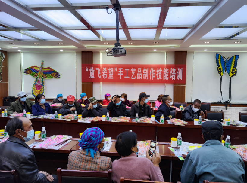 在5月15全國助殘日這一天,在饅頭營鄉(xiāng)會議室,希望小鎮(zhèn)項目組聯(lián)合張北縣殘聯(lián)、張北縣殘疾人溫馨家園組織了30多名當?shù)亓羰乩先?、殘疾人村民開展了“放飛希望 手工藝品制作技能培訓(xùn)”,本次培訓(xùn)一共分為4期,首次培訓(xùn)主要內(nèi)容為“風箏制作”,重點針對傳統(tǒng)風箏及娛樂風箏制作工藝進行培訓(xùn),培訓(xùn)現(xiàn)場邀請了中國航空學(xué)會專家、張北縣政協(xié)委員新聯(lián)會會員,剪紙、風箏制作專家樹兒灣小學(xué)“蘭學(xué)淵老師”進行了專業(yè)講解及培訓(xùn),確保每一位學(xué)員掌握風箏的制作工藝。